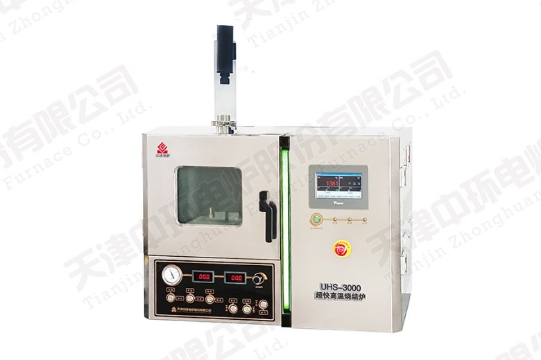 超快高温烧结炉(又名焦耳加热装置)是一种多用途的新型快速超高温烧结设备。其工作原理是:利用通电碳材料的焦耳加热形成高温场,获得超快升降温速率和超高烧结温度,可在数分钟时间内实现粉体合成及陶瓷材料的烧结致密化。